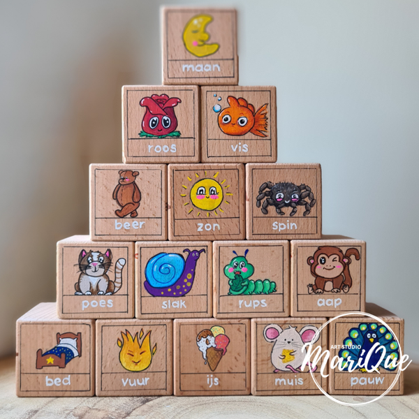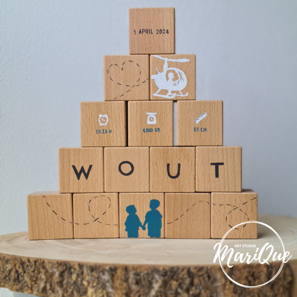 De houten blokkensets van Art Studio MariQue staan garant voor eindeloos creatief speelplezier en prachtige herinneringen. Gemaakt van hout uit duurzaam beheerde Europese bossen, zijn de sets veilig, stevig en volledig te personaliseren, bijvoorbeeld naar het voorbeeld van een geboortekaartje, bedrijfslogo of ander ontwerp. Elke set wordt met zorg handgemaakt en geschilderd en kan worden uitgebreid met extra zijdes en een handige blokkenzak, zodat je alles gemakkelijk mee kunt nemen.