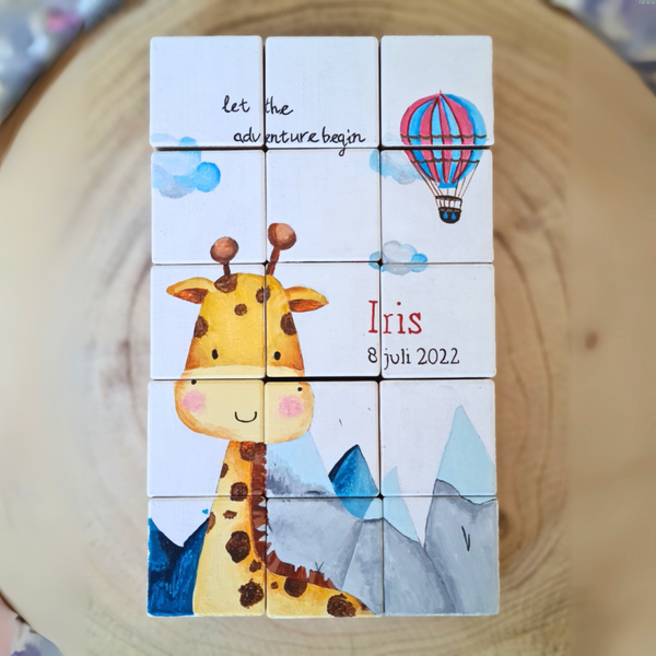Puzzel met afbeelding naar voorbeeld (bijv. geboortekaartje, bedrijfslogo)