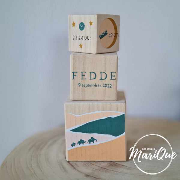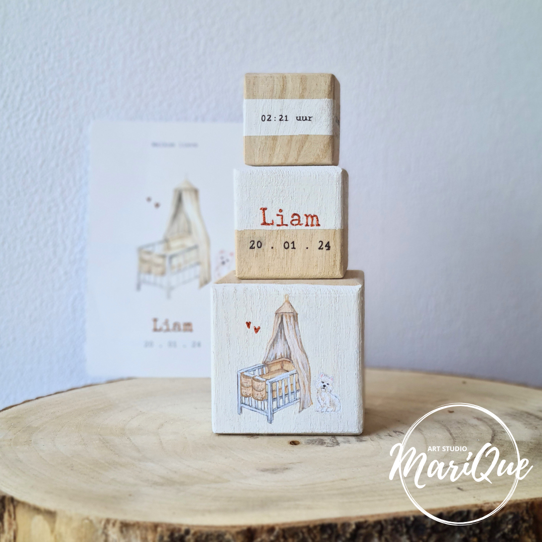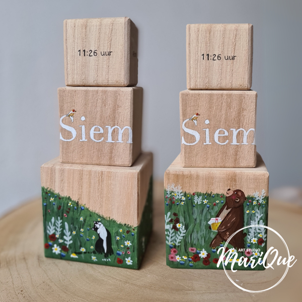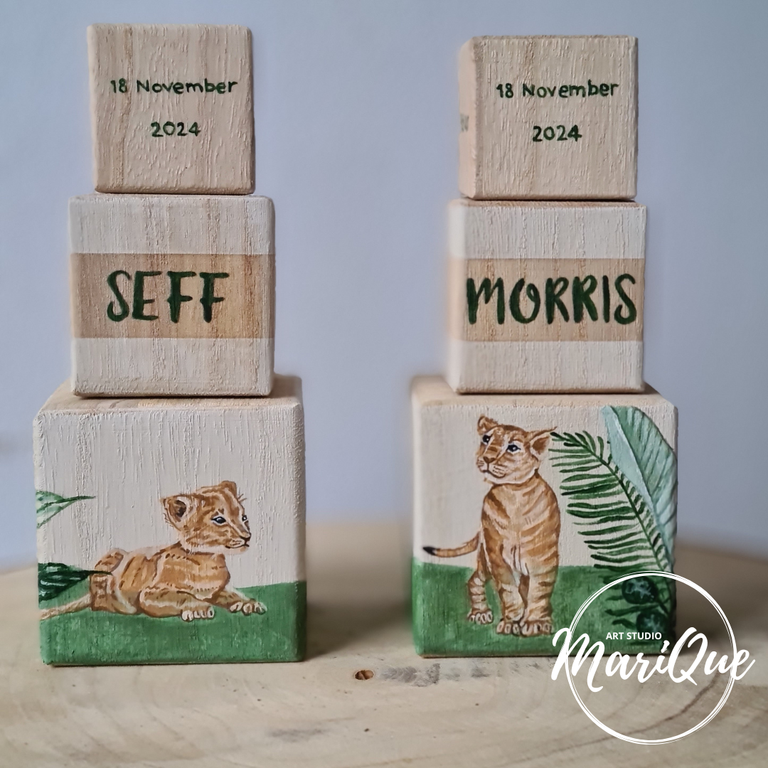 De houten blokkensets van Art Studio MariQue staan garant voor eindeloos creatief speelplezier en prachtige herinneringen. Gemaakt van hout uit duurzaam beheerde Europese bossen, zijn de sets veilig, stevig en volledig te personaliseren, bijvoorbeeld naar het voorbeeld van een geboortekaartje, bedrijfslogo of ander ontwerp. Elke set wordt met zorg handgemaakt en kan worden uitgebreid met extra zijdes en een handige blokkenzak, zodat je alles gemakkelijk mee kunt nemen.