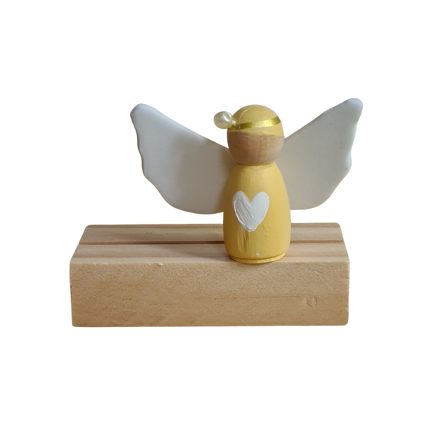 Een troostvol Cadoosje om te koesteren: een houten kaarthouder, een kaartje met de tekst “Wat je in je hart bewaart raak je nooit meer kwijt” en een pegdoll engeltje. Mooi als herinnering of troostcadeautje. Kies je favoriete kleur en kies eventueel een persoonlijke tekst.