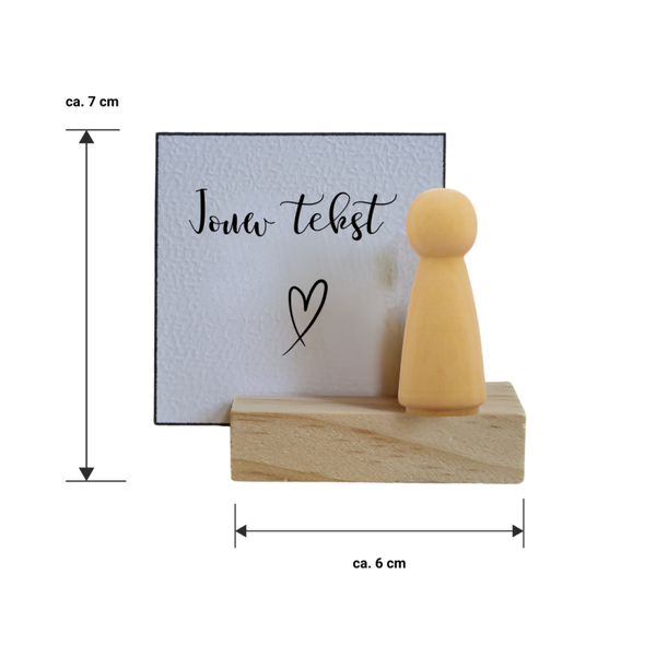Verras jezelf of een ander met een uniek Cadoosje vol blijdschap! In elk doosje vind je een houten kaarthouder, een klein kaartje met een lieve boodschap én een vrolijke pegdoll. De kaarthouder kan natuurlijk ook later gebruikt worden voor een eigen kaartje of foto. Je kunt zelf kiezen welke vorm pegdoll je wilt en zelfs een eigen tekst toevoegen. Laat zien dat je aan iemand denkt, met een persoonlijk tintje!